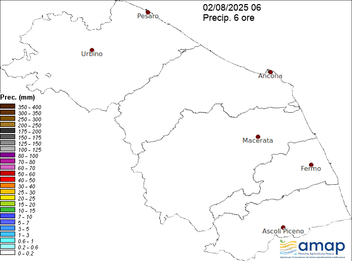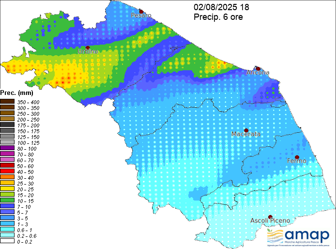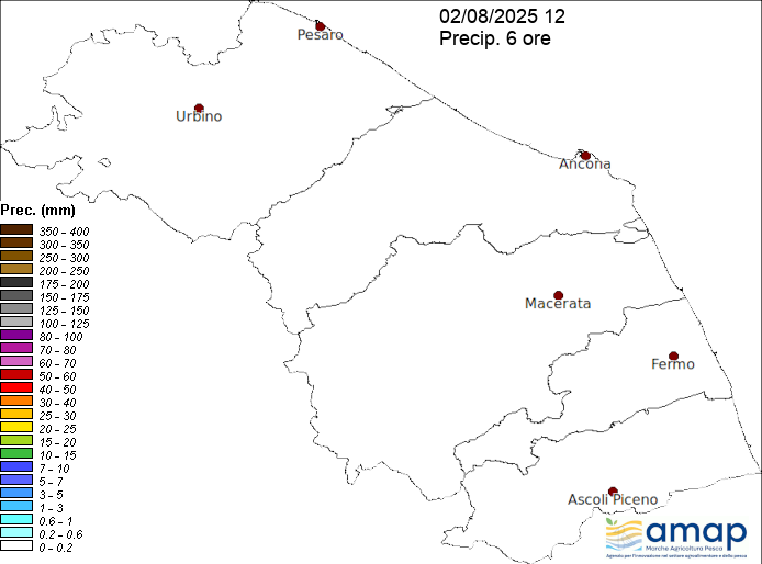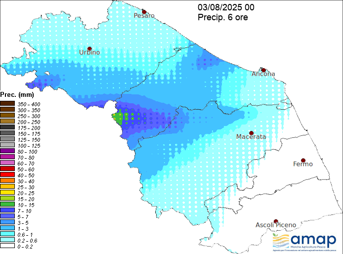 Precipitazione prevista cumulata nelle 6 ore, Modello CNR-ISAC MOLOCH (le mappe vengono aggiornate dopo le ore 11).